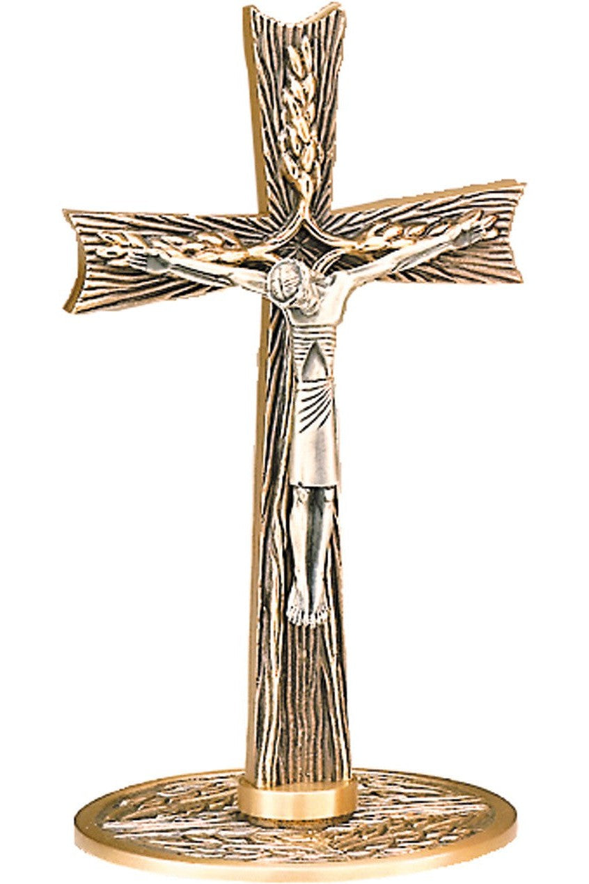 Unit price perAltar Crucifix made with Combination Cast Textured and Satin Bronze. Height 11 1/2" Base 5 1/2".