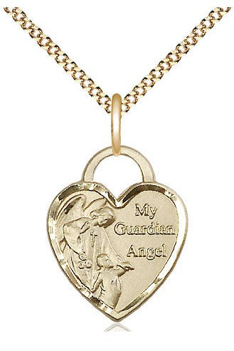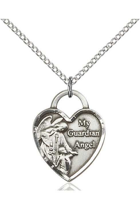 Unit price perGuardian Angel Heart Medal. Lite 18" Curb Chain. Medal Dimensions: 3/4" x 5/8". Gift boxed in a velvet box.