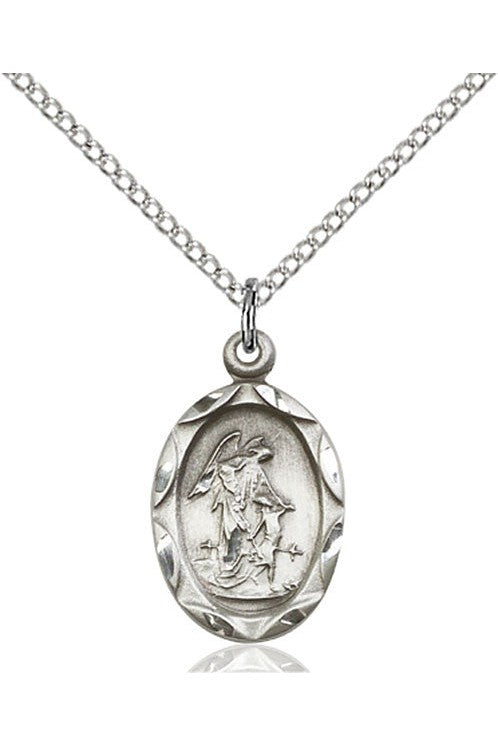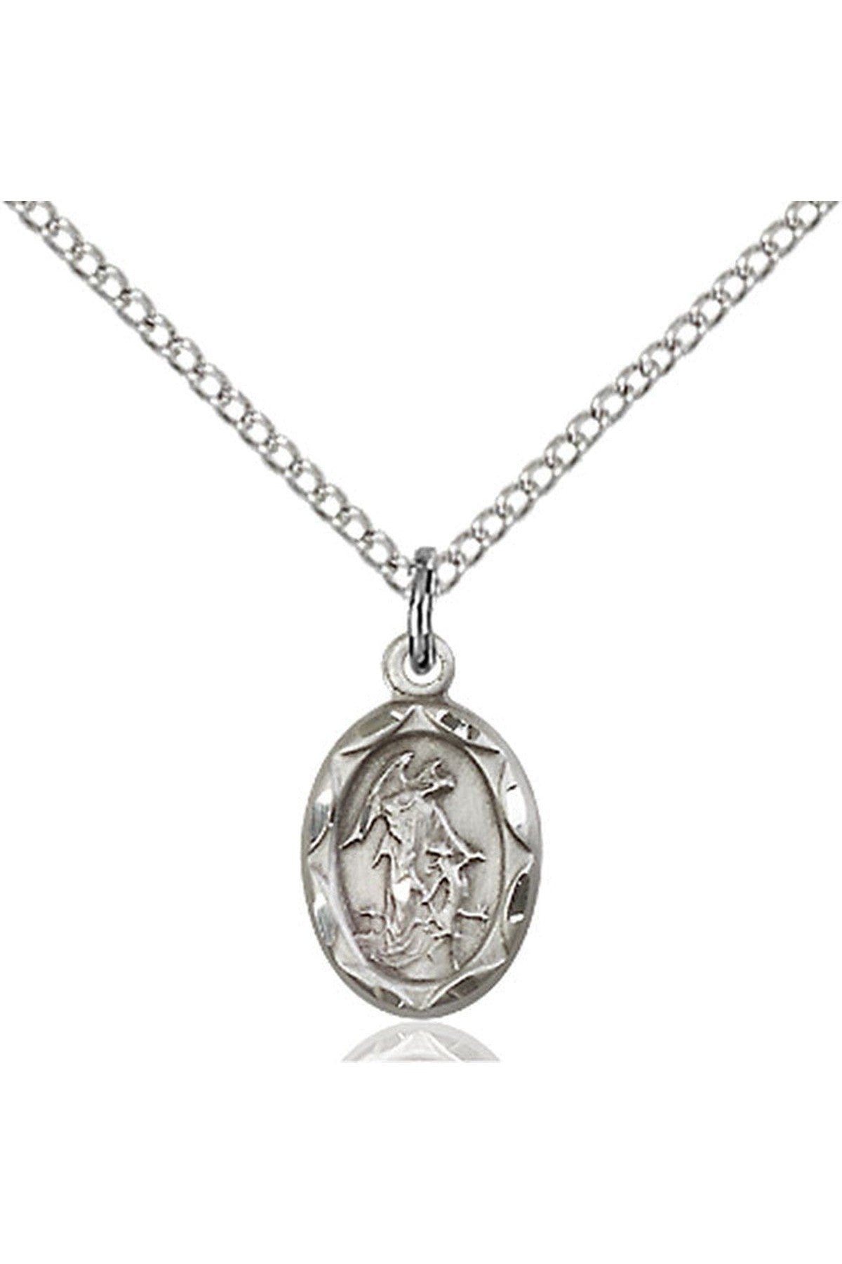 Unit price perSterling Silver Guardian Angel Medal. Lite 18" Curb Chain. Medal Dimensions: 5/8" x 1/2". Gift boxed in a velvet box.