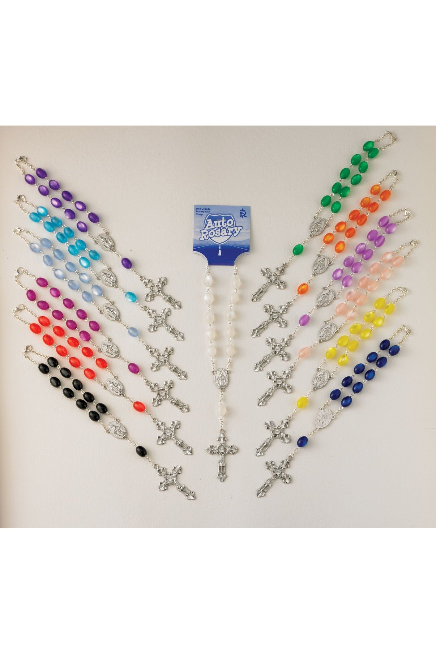 Unit price per7 mm Glass bead auto rosaries in assorted colors. Have a marble look to them.