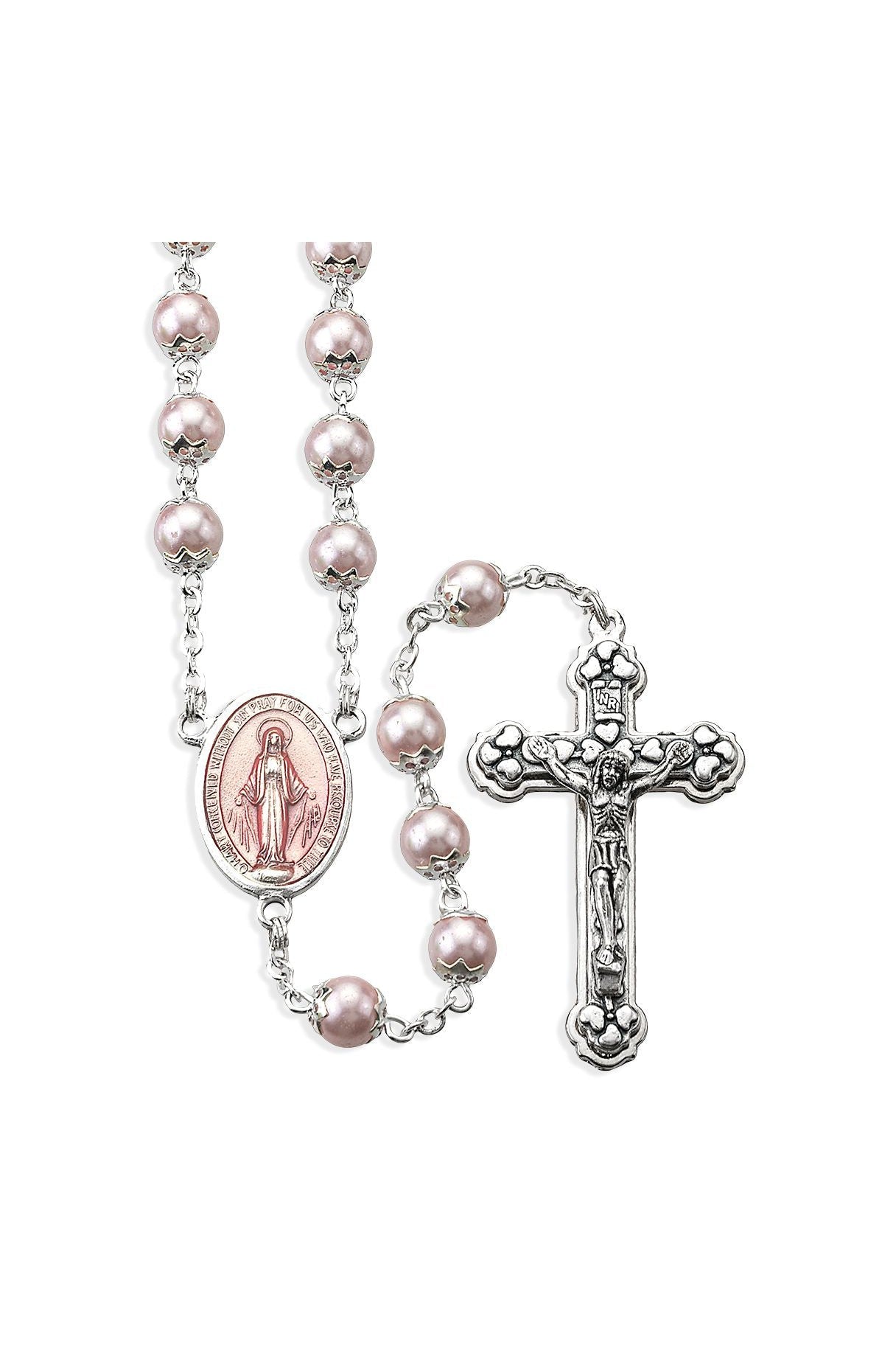 Pink Peal Capped 7mm bead Rosary - TA109RO