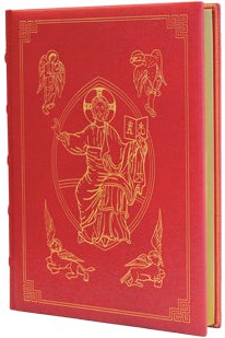 Christ the Teacher is pictured on the front cover and the Four Evangelists are pictured on the back cover.