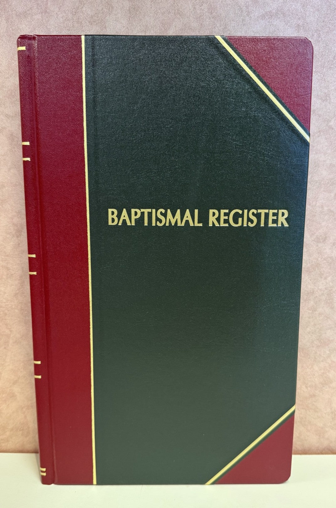 Deluxe Registers are recommended for the average parish. These 200 page, 9"x 14" books are hand bound with green Spanish grain sides, red sturdy flex corners and back, gold titled and tooled. All Church Record Books are indexed and have printed numbered pages. Holds 2000 entries.