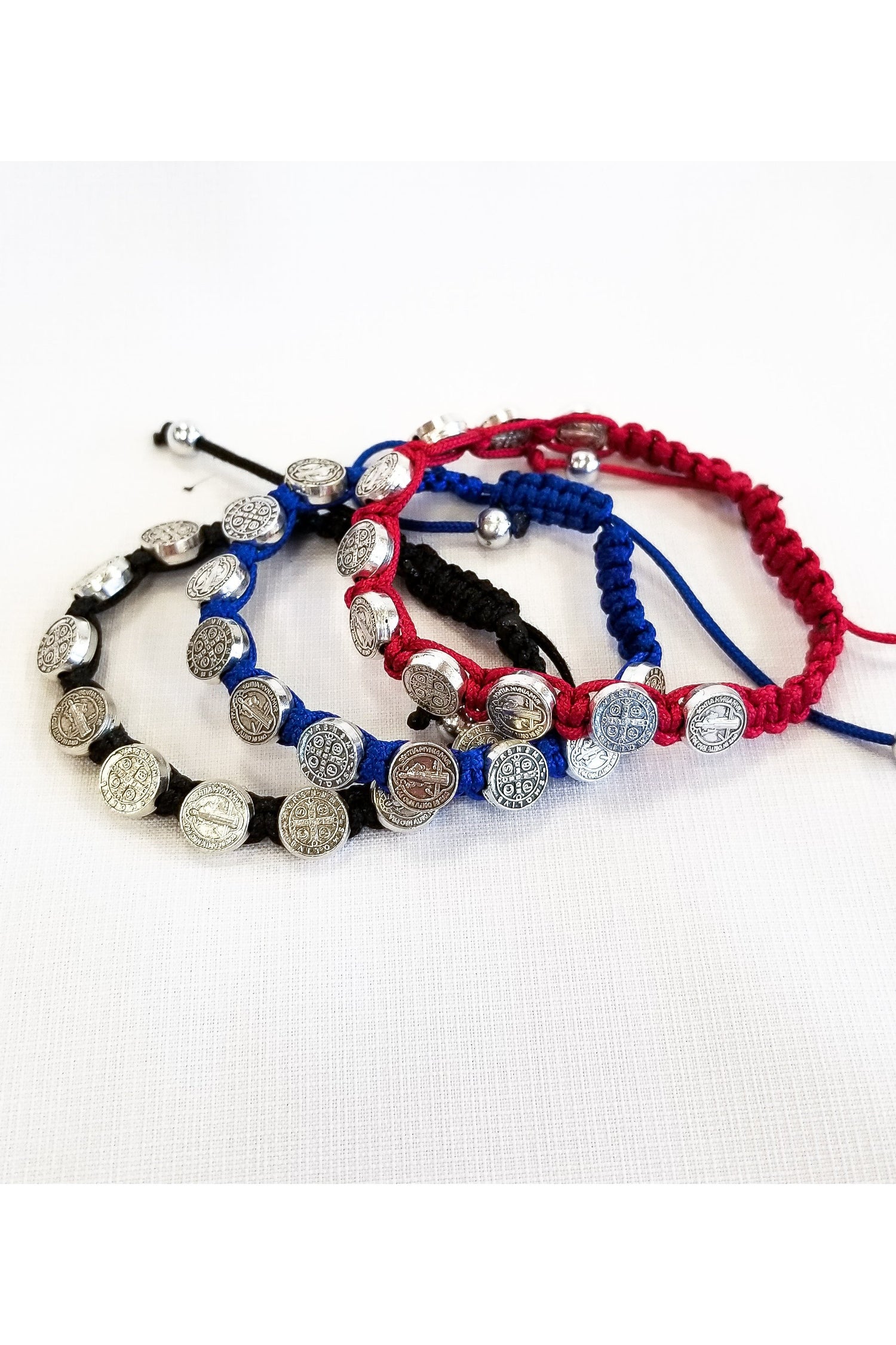 Unit price perAdjustable corded bracelet with 10 Saint Benedict medals. Available in red, black, and blue.