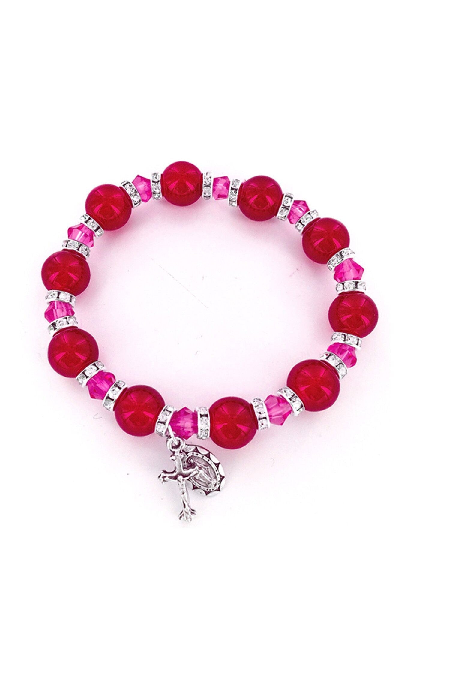 Unit price perRose glass bead bracelet attached with a small silver crucifix and medal of Mary. Comes in a gift box.
