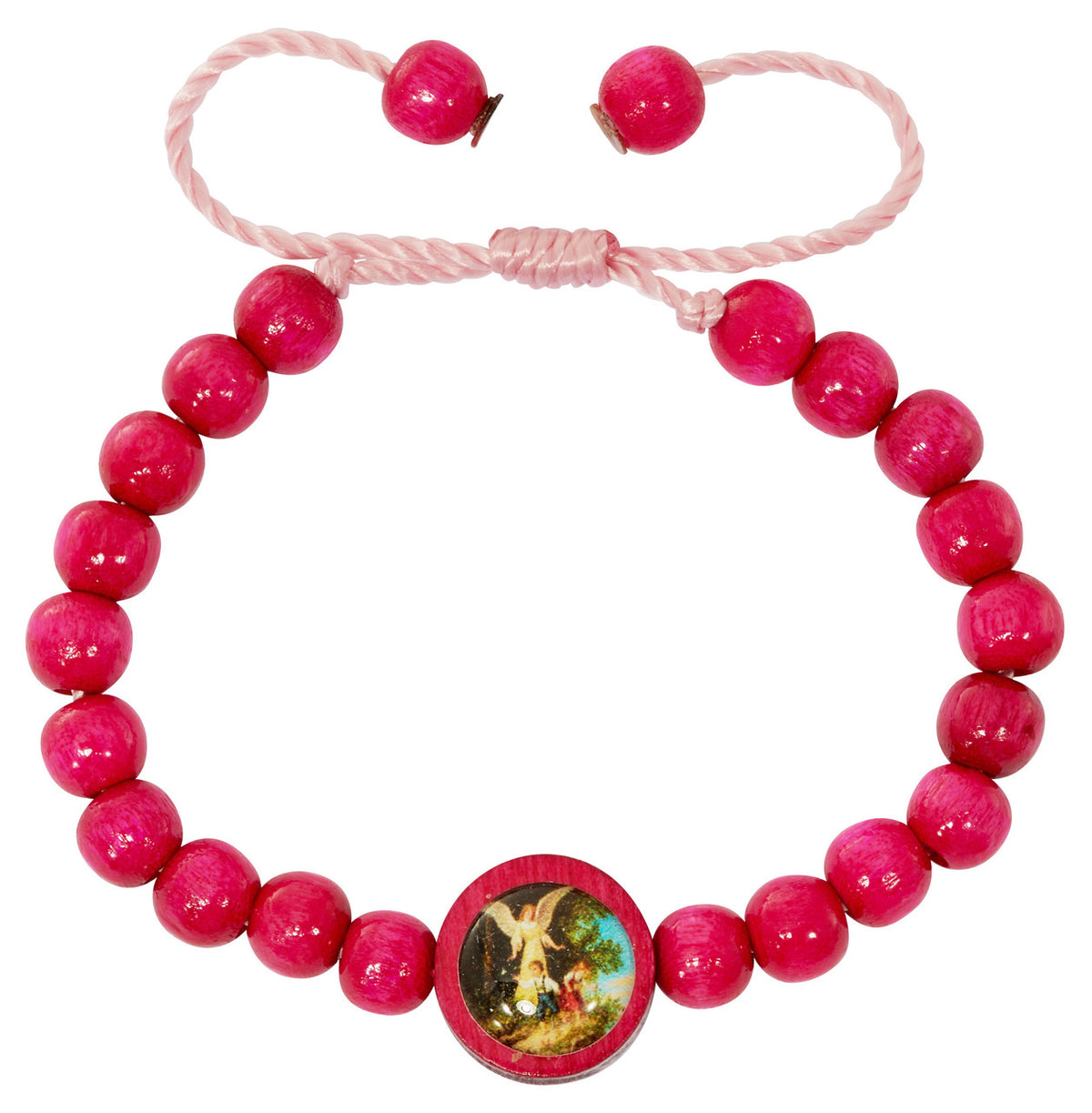 Unit price perPink wood guardian angel 2 decade rosary bracelet. Adjustable kid size.