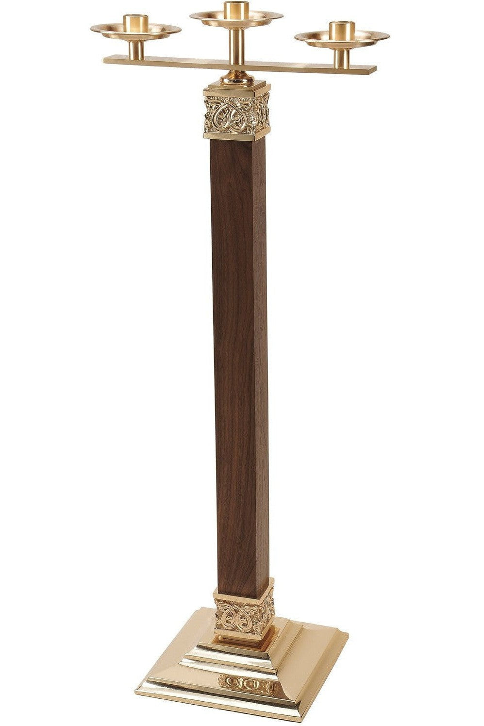 Unit price perCast bronze combined with smooth satin and high polish finish. Base 11-1/4" square, total height 44". Available in Wood (Shown) or Bronze, available as 3, 5, or 7 lite. Illustrated in natural walnut.