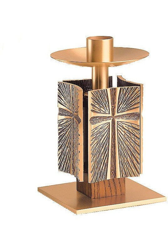 Unit price perThese altar candlesticks are made of bronze, combined satin and textured surfaces. Supplied with 1-1/2" sockets and plexiglass wax protectors. Larger diameter sockets available at an additional charged. Durable oven baked finish.