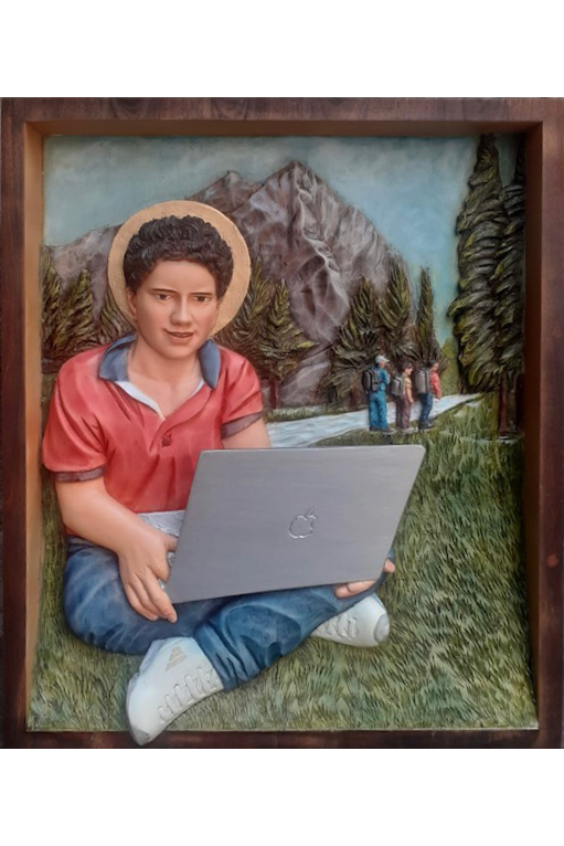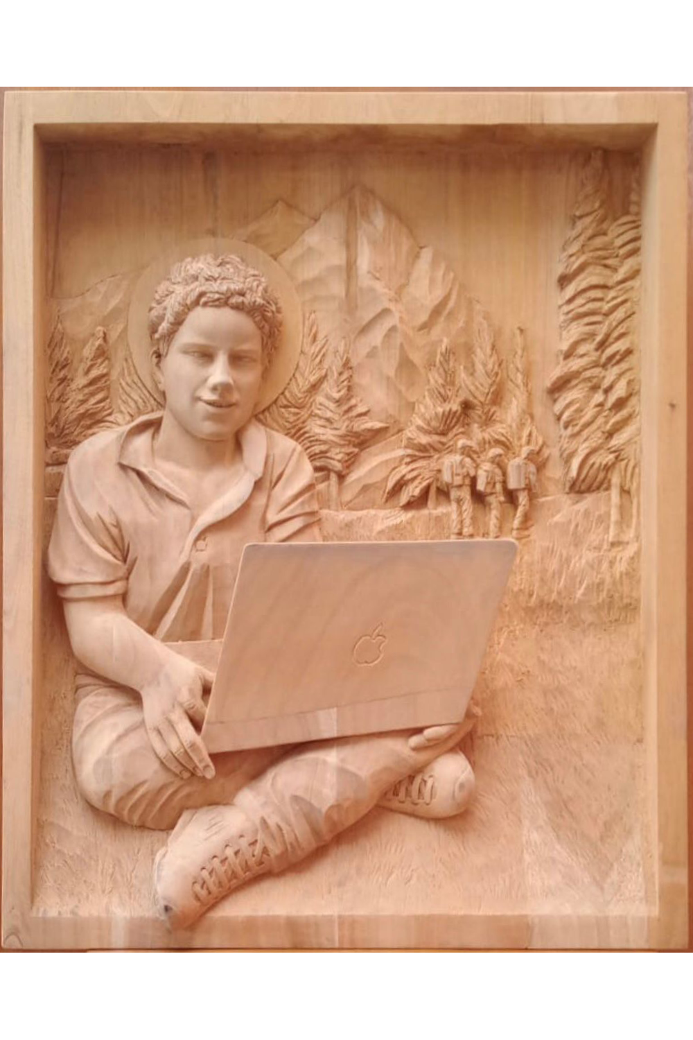 Unit price perHand Carved Wood Relief of St Carlo Acutis. Indoor Use Only.