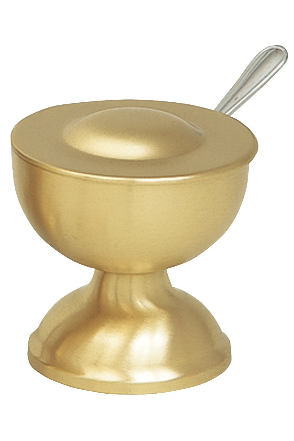 Unit price per3" H., 2 7/8" dia. with hinged lid. Satin brass, Satin bronze, Polish brass, Polish bronze, 24k gold plated, or Stainless steel. Spoon only (MIKSPOON) available in 24k gold plated or stainless steel.