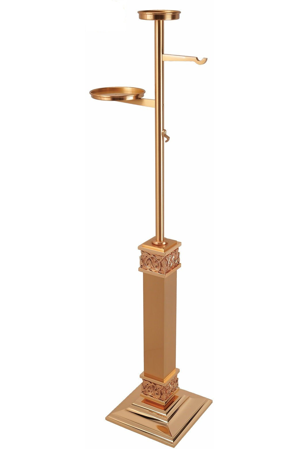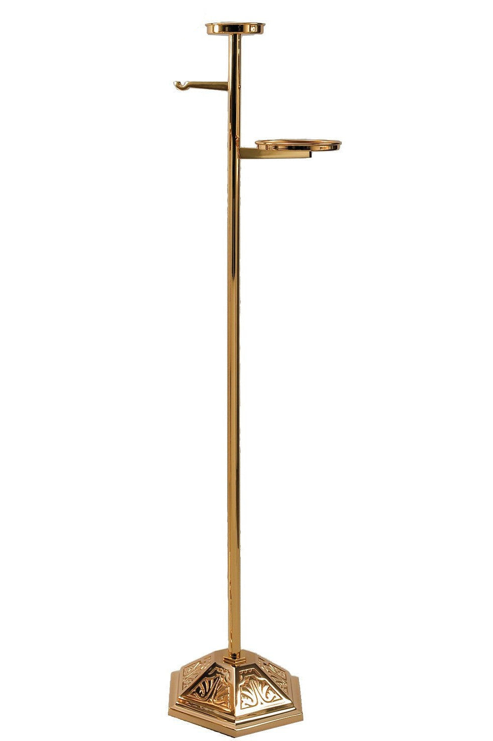 Unit price perThis stand is available in your choice of bronze or brass with a high polish finish. The shelves are arranged so that ashes and Holy Water are easily accessible. The stand measures fifty-one inches tall with a triangular base measuring ten inches in diameter.