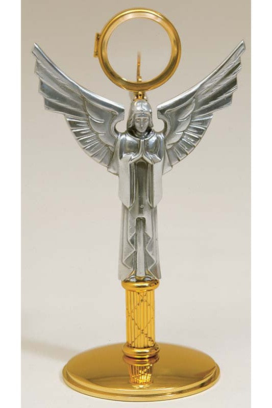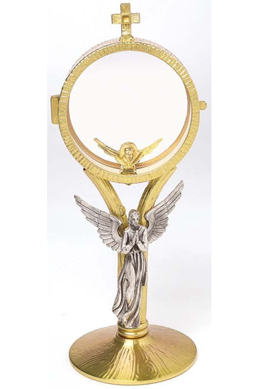 Unit price perTwo-tone gold plated with oxidized silver angel. Clip-style luna, holds host up to 3". 10 1/2" H., 3 3/4" base.