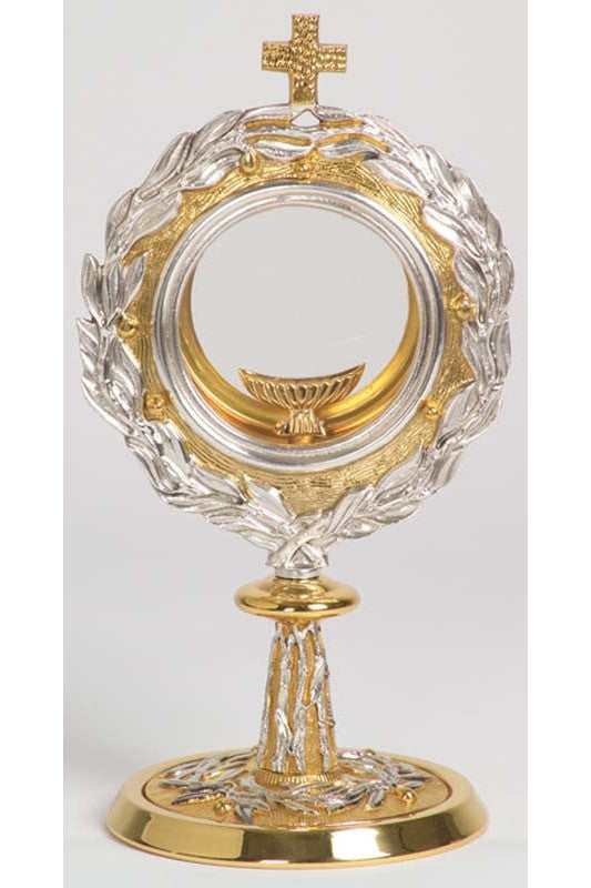 Unit price perGold and silver plated with crown of thorns detailing. All-purpose luna. 9" H., 4 1/2" dia. face, 3 1/2" base.