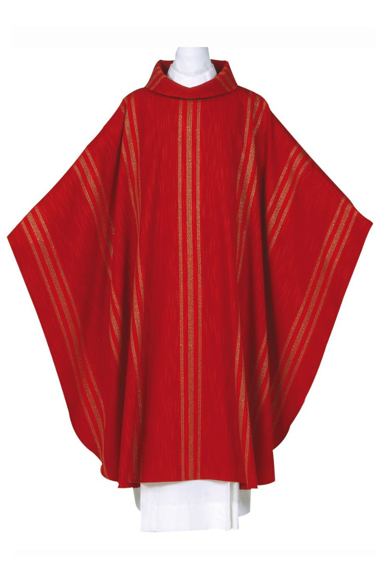 The chasubles have an ample gothic cut with a 61 inch width and a 53 inch length and include an inner stole.