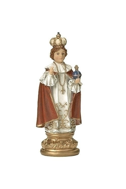 Unit price per4"Infant Of Prague by Joseph Studio. From their Renaissance Collection, this Infant Of Prague statue is hand painted to perfection in a beautiful color finish in resin and stone. Great as a gift or for your own home. Dimensions: 4"H x 2.125"W x 1.375"D