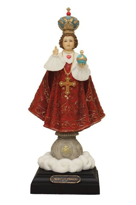 Unit price per10" Infant of Prague Statue by Joseph Studio. From their Renaissance Collection, this Infant of Prague Statue is hand painted to perfection in a beautiful color finish in resin and stone. Great as a gift or for your own home. Dimensions:10"H x 5.5"W x 3.5"D