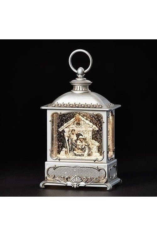 Unit price per8.75"H x LED swirl pewter holy family lantern
