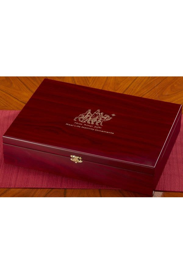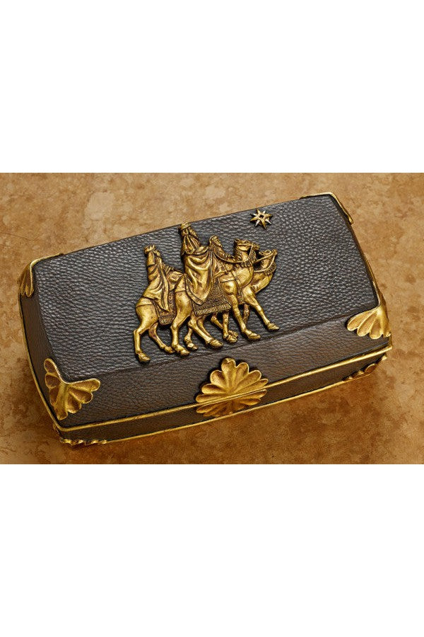 Unit price perMagi following the Christmas Star adorns the lid of this chest that has the look of hand-tooled leather. Inside, real 23k gold and pure frankincense and myrrh are displayed in rich, red satin. When opened, classical guitar renditions of We Three Kings and Joy To The World bring added joy to the appreciation of The Original Gifts of Christmas.