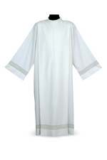 Unit price perAlb with wrap front and back, with lace insert in gold on sleeves and bottom.