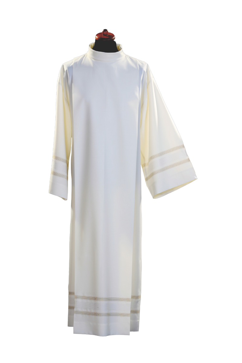 Unit price perAlb made of a woolen tropic decorated with gentle embroidery all around. Tropic (60% wool, 40% polyester)