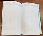 Standard Edition is 50 pages, 1,400 entries. 9"x14" Permalife ledger, indexed. Bound in green Spanish grain sides with red sturdiflex corners and back. Gold title and tooled cover.