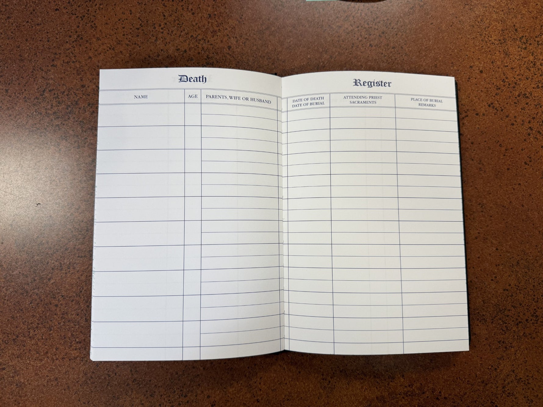 Unit price perHand sewn hardcover archival registers printed on acid free archival paper that with proper care will last indefinitely. Acid free paper is resistant to water damage and has high light fastness, this allows the pages to resist fading from exposure to sunlight over time.