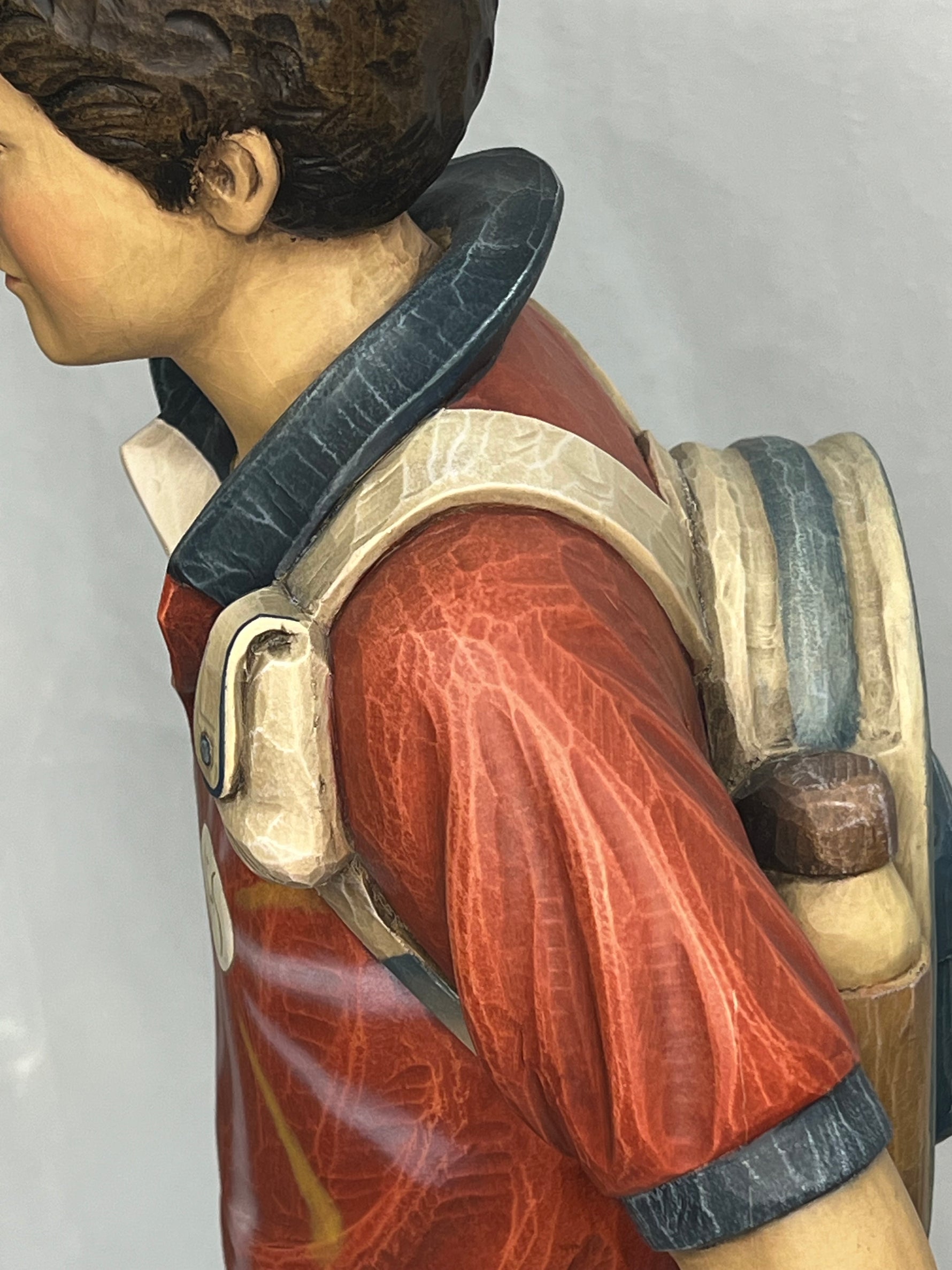 Hand carved out of linden wood. It is hand painted in traditional colors AT 27.5" height. Each piece can be customized to your requirements.