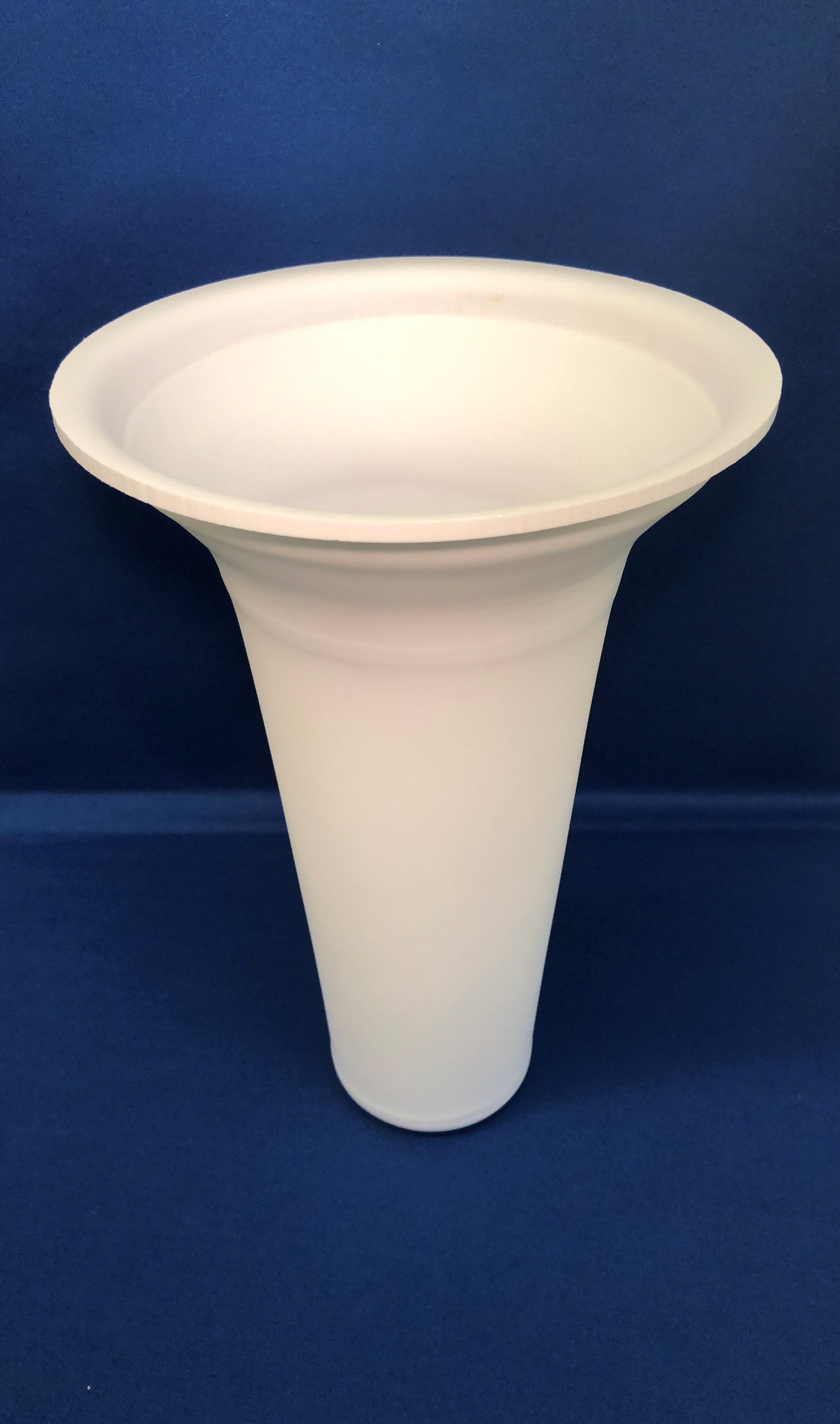 White polystyrene plastic Liner, with a flat flange to rest on the top of the brass vase to eliminate spills and is made in the U.S.A. Fits the Rostand vase #4005-16, this vase was previously made by Herman J Wolf and George Wolf Companies. Sold by each.