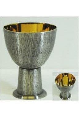Unit price per2432 Communion Distribution Cup with Straight Hammered Oxidized Silver Exterior with Bright highly Polished interior in cup. Size: 5-3/4" Tall, 16 oz.