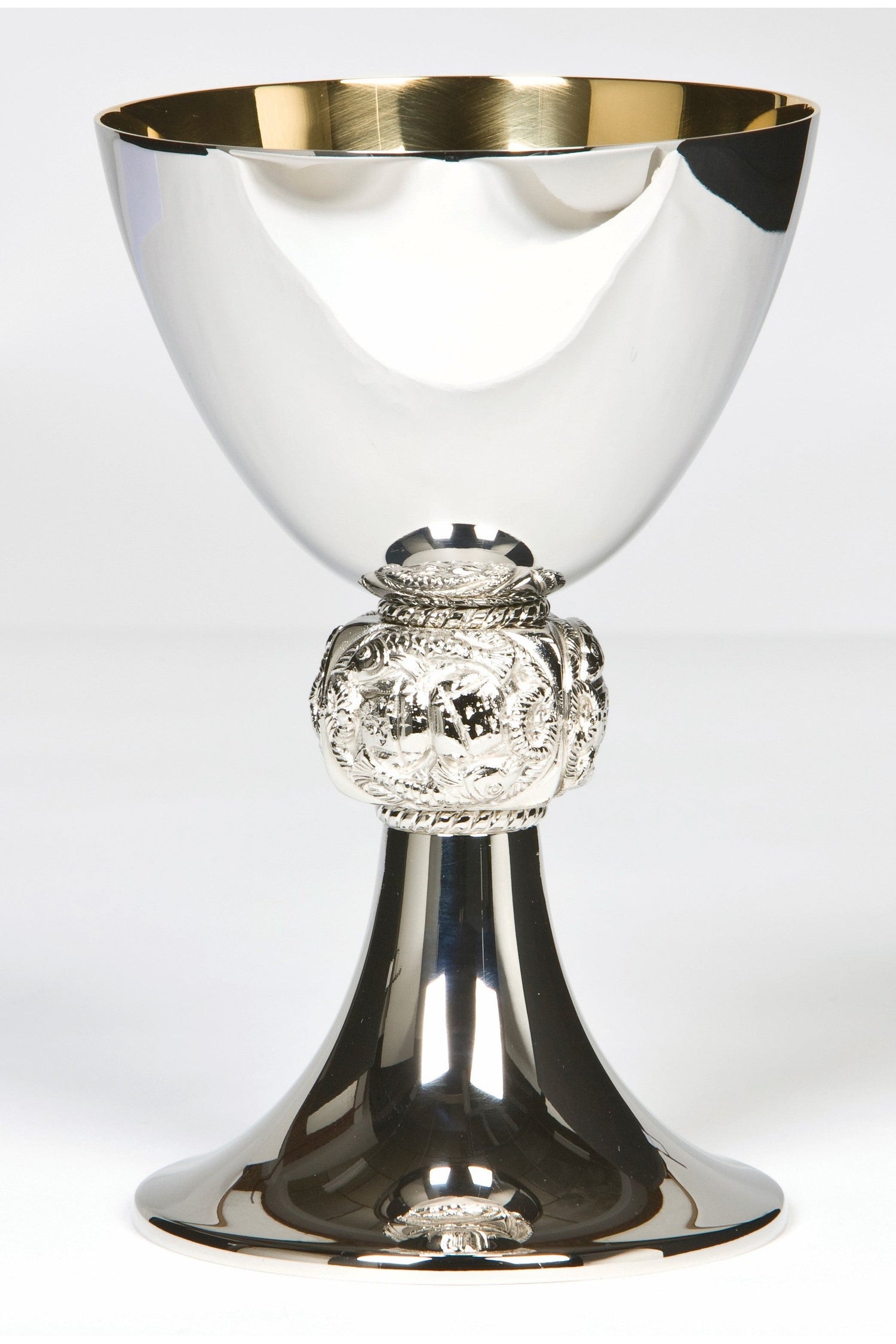 Unit price perThis classic chalice is elegantly designed with smooth curves and a sweeping base. The chalice is brass with heavy silver plate and a gold lined inner cup. Matching paten EW5564 is sold separately (see below).