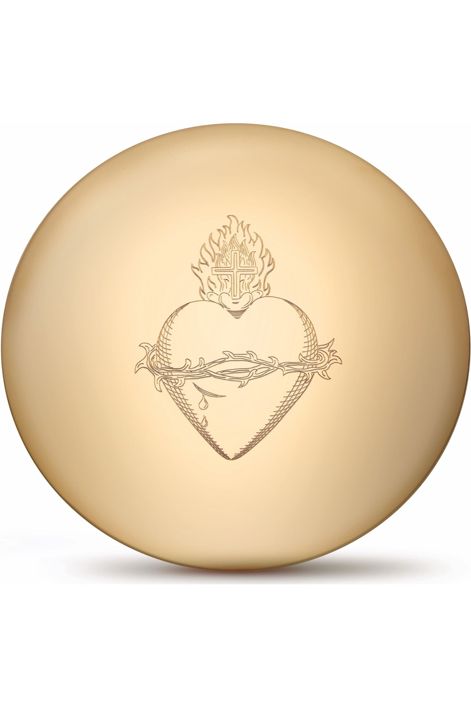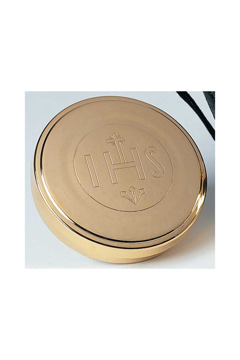 Unit price perThis classic host box is designed to match chalice EW5560. The box is brass with heavy silver plate and a gold lined inside. The lid has a simple engraved cross.