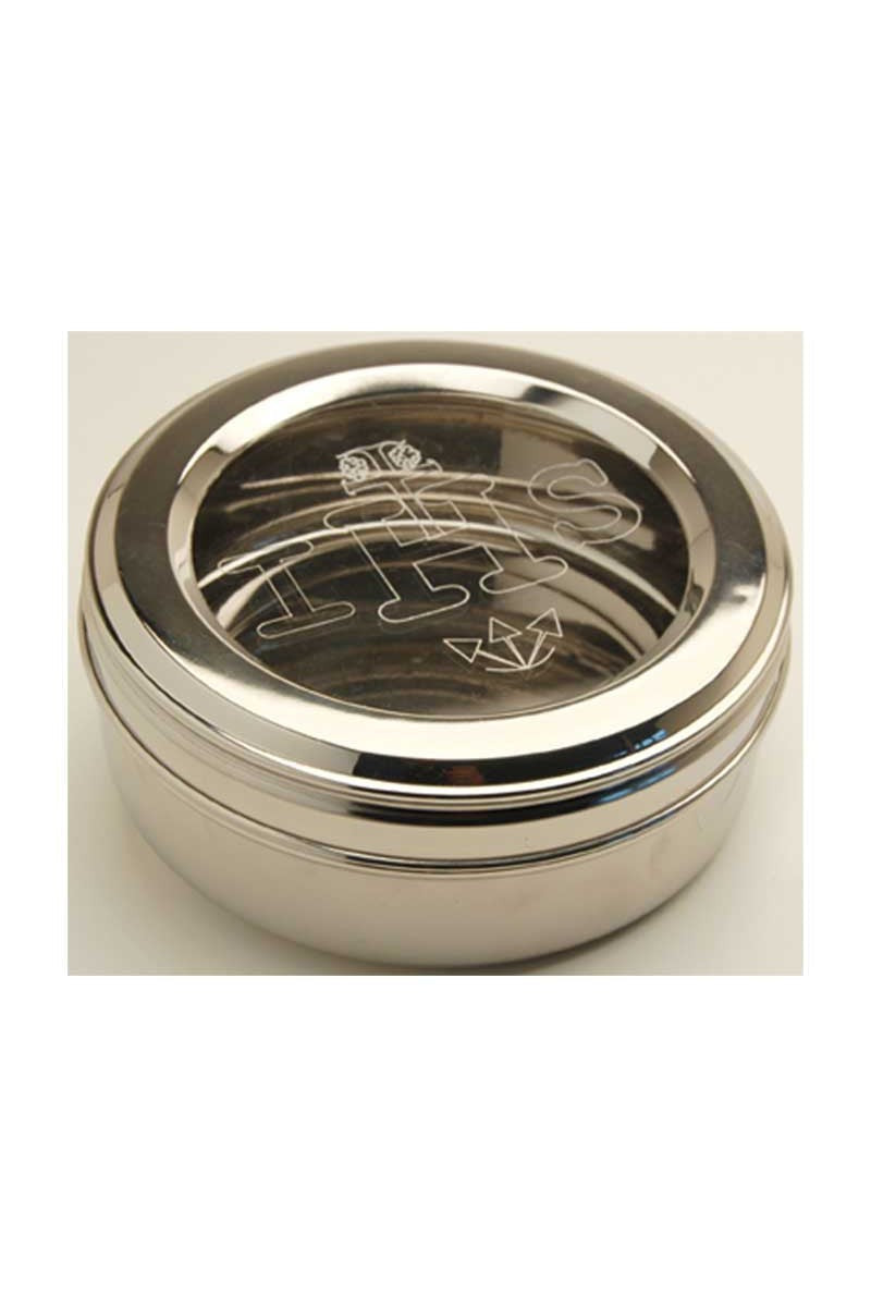 Unit price per6 3/4" dia., 2 3/4" deep. 30 host cap. (5 3/4" hosts). 120 host cap. (2 3/4" hosts). 600 host cap. (1 1/8" hosts). This pyx has a CLEAR lid with etching on it. The lid is NOT silver.