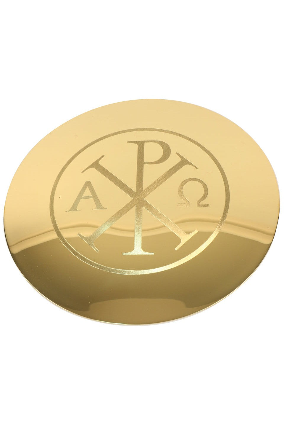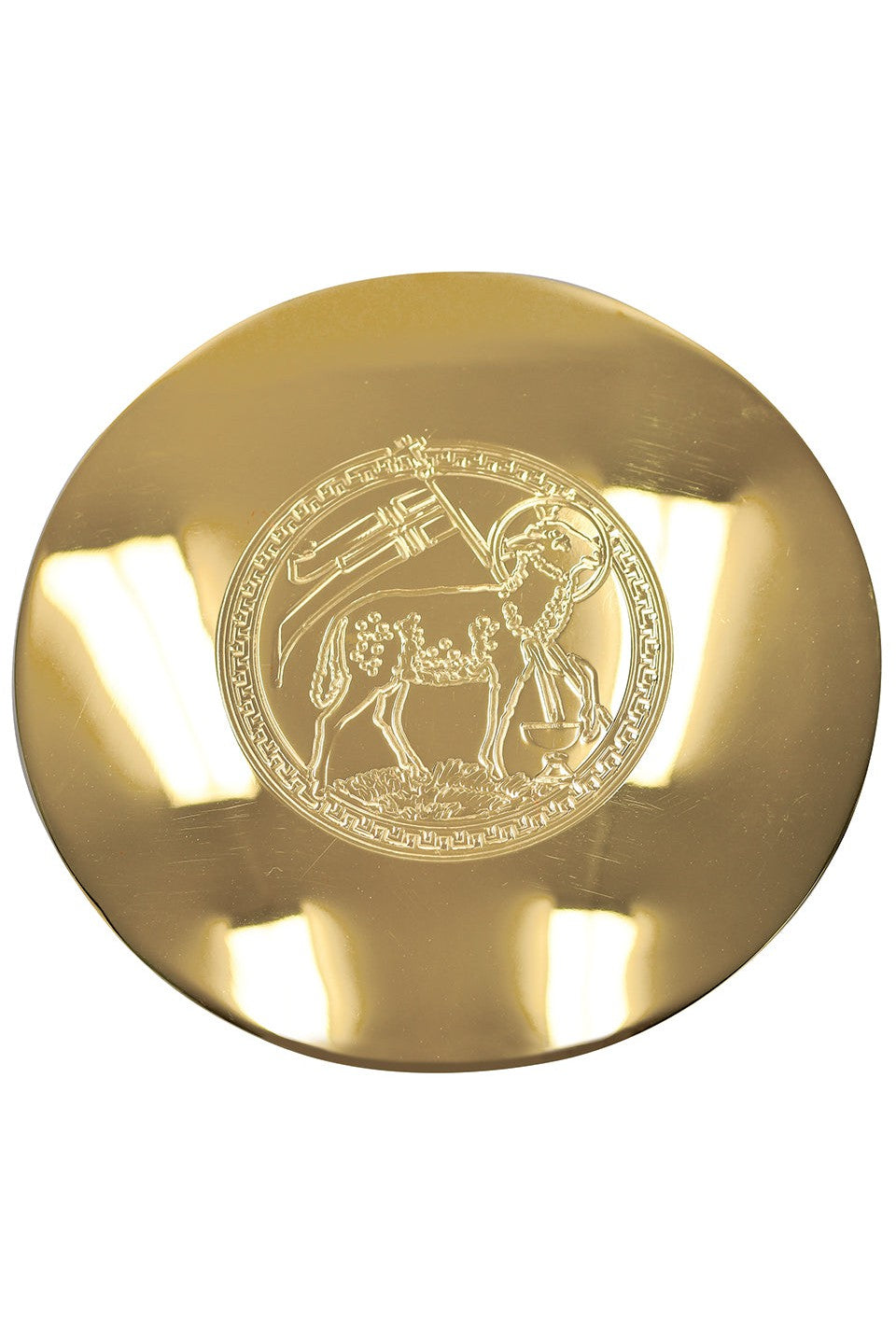 Unit price perThis 7" dish paten is designed to match chalice EW5560. The paten is brass with silver plating on the bottom and gold lining on the top.