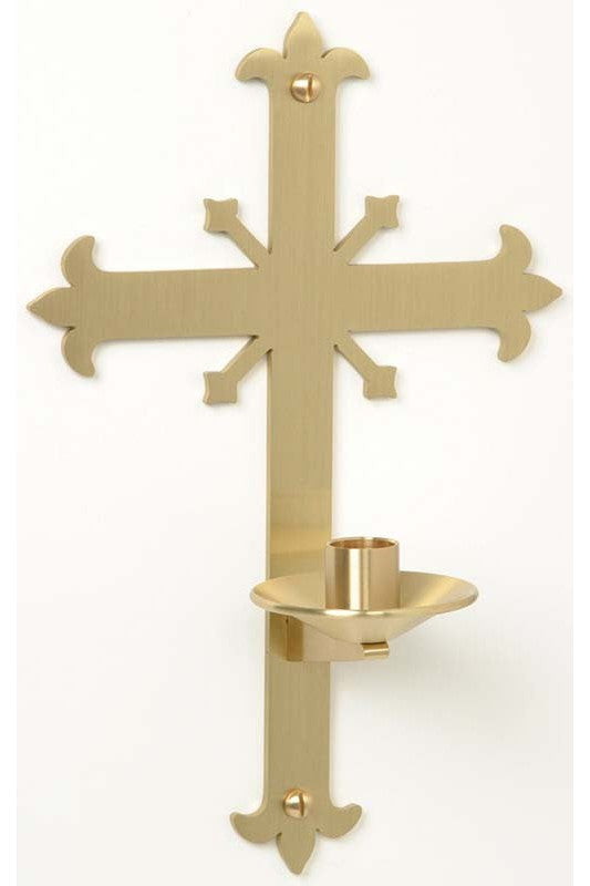 Unit price / perCandle Bracket All solid brass, satin finish fleur-de-lis cross. 8" x 12", extends 4", 7/8" socket.