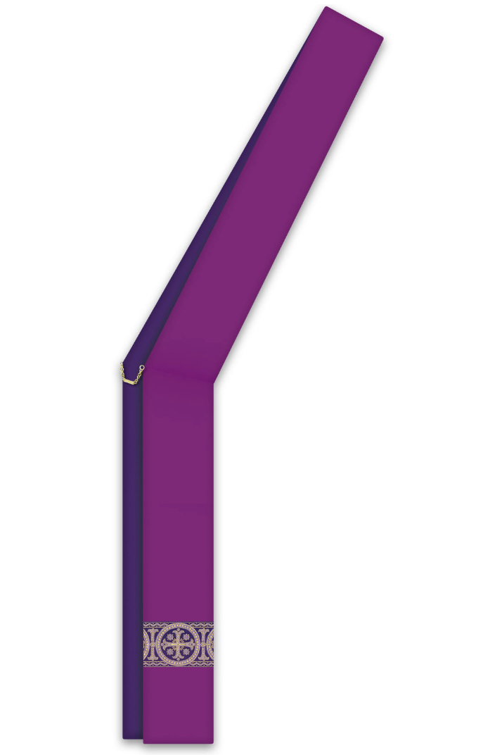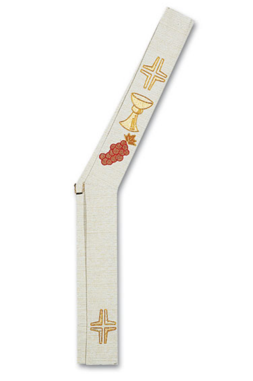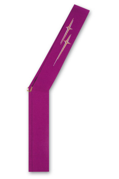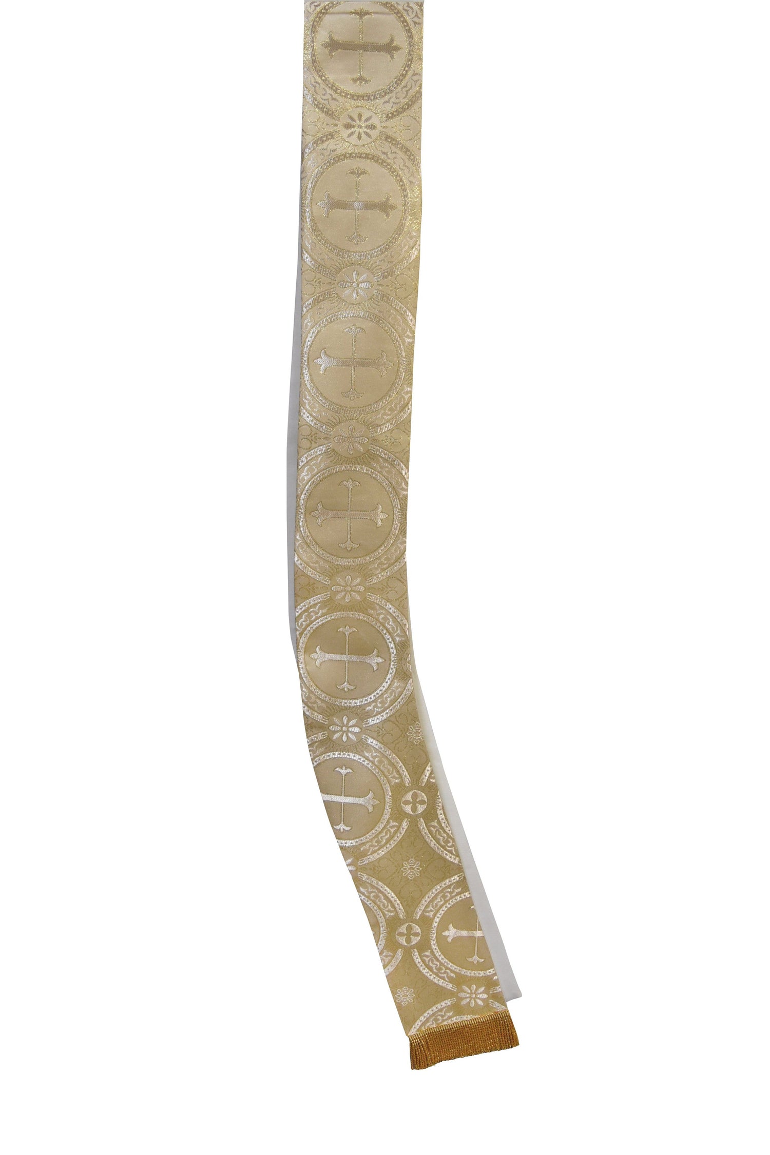 Unit price perDeacon stoles, style 34; with machine embroidered cross in gold threads; worn from left shoulder to right hip.