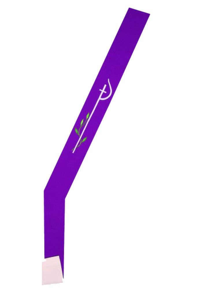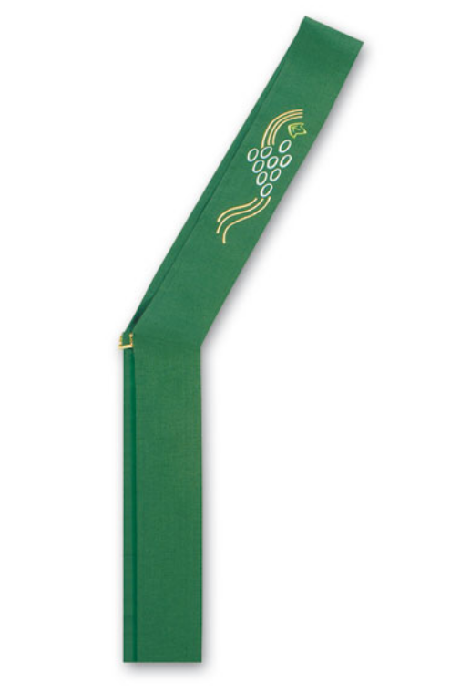Unit price perDeacon stoleIn washable Dupion-fabric. Style 34: embroidery in front on chest height, at the back on lower panel. Worn from left shoulder to right hip. Exquisite embroidery in color threads. Only available in the designs as shown. All designs are available on each liturgical color.