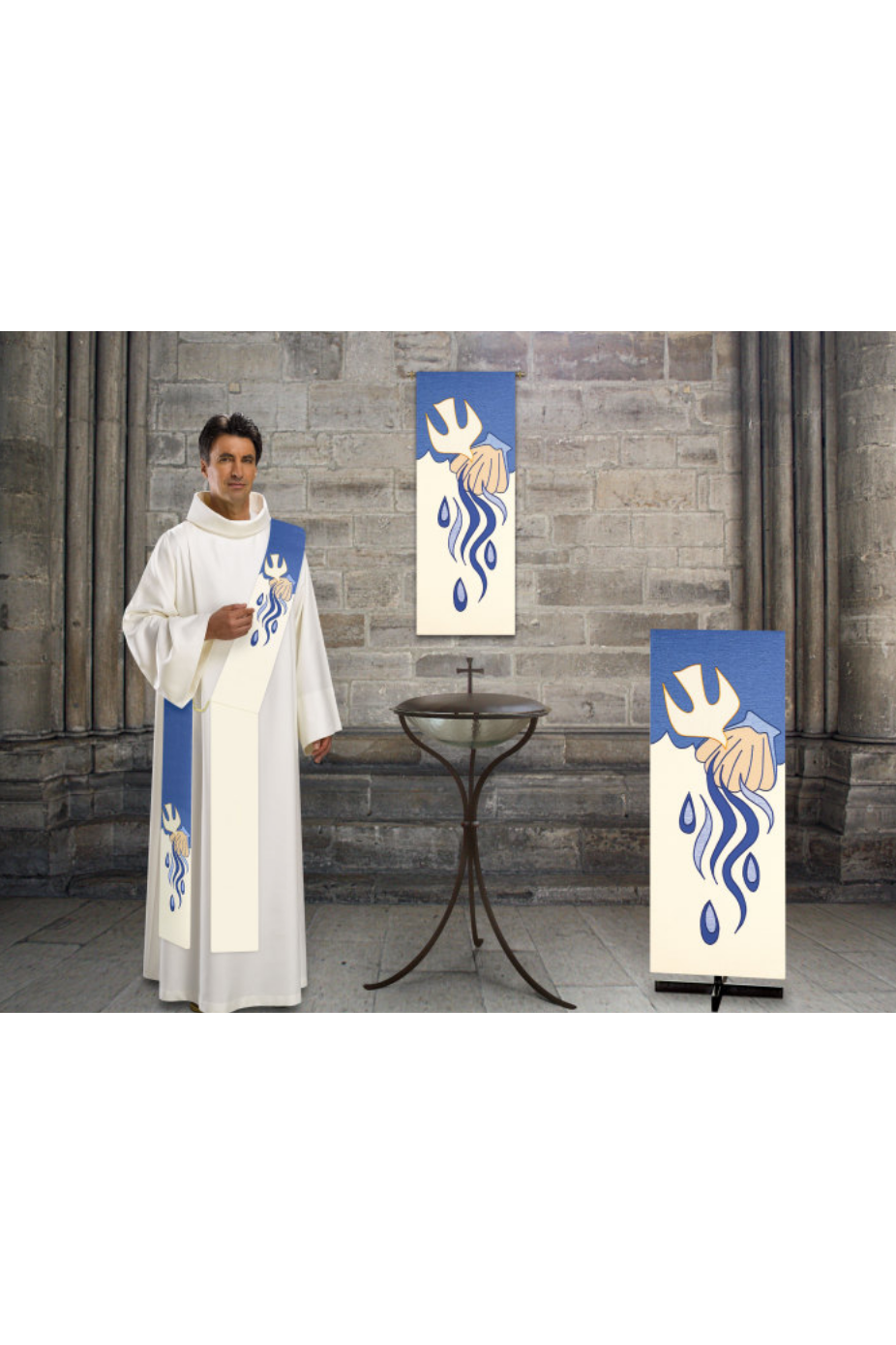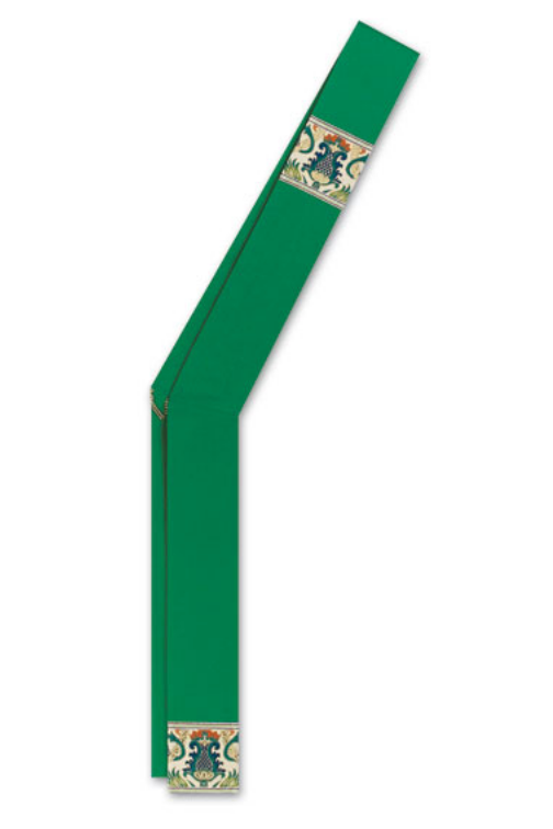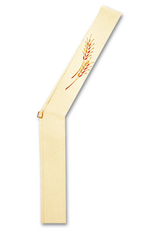 Unit price perDeacon stole In Lucia fabric. With a combination of applique and embroidery in gold-and wool thread. Front motif at chest height, back motif on lower panel.