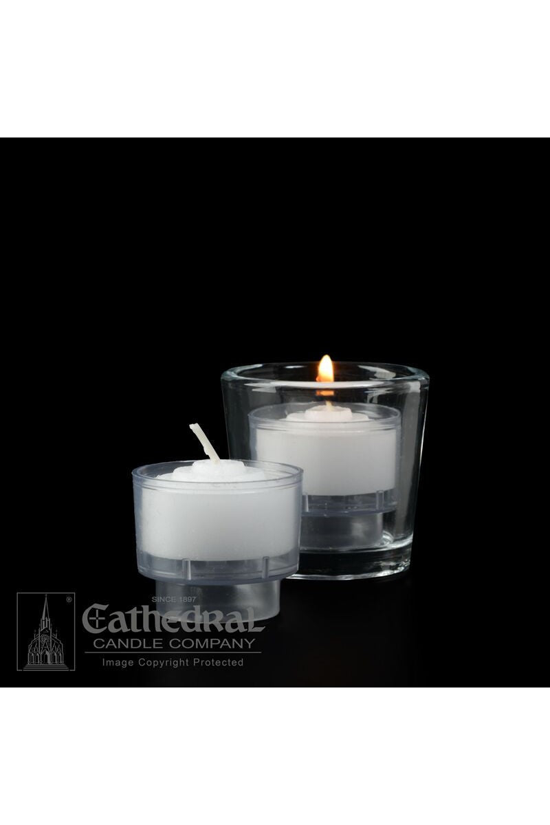 Unit price per3-Day plastic insert candles come in a case of 48. Cathedral Brand Plastic Inserta-Lite Candles combine the clear plastic candle refills with the insulation of the reusable glass globes. The Inserta-Lite provides superior offering candle performance without the weight of glass candles. Convenient, safe, and economical! Each candle measures 2-3/8" x 4-5/8"