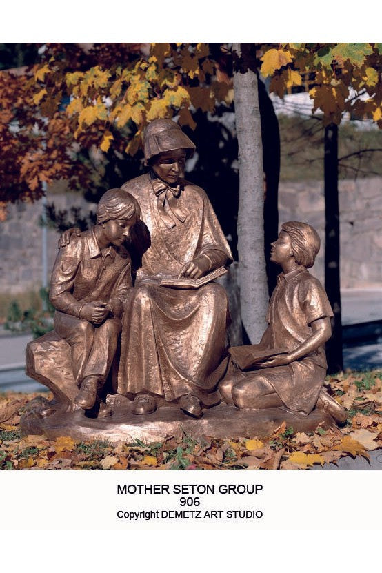 Unit price perMother Seton Group is made by the Demetz Art Studio in Italy. Hand carved out of fiberglass. It is hand painted in traditional colors. Available in one size. Each piece can be customized to your requirements. **Note: price for wooden pedestal with lettering on request.