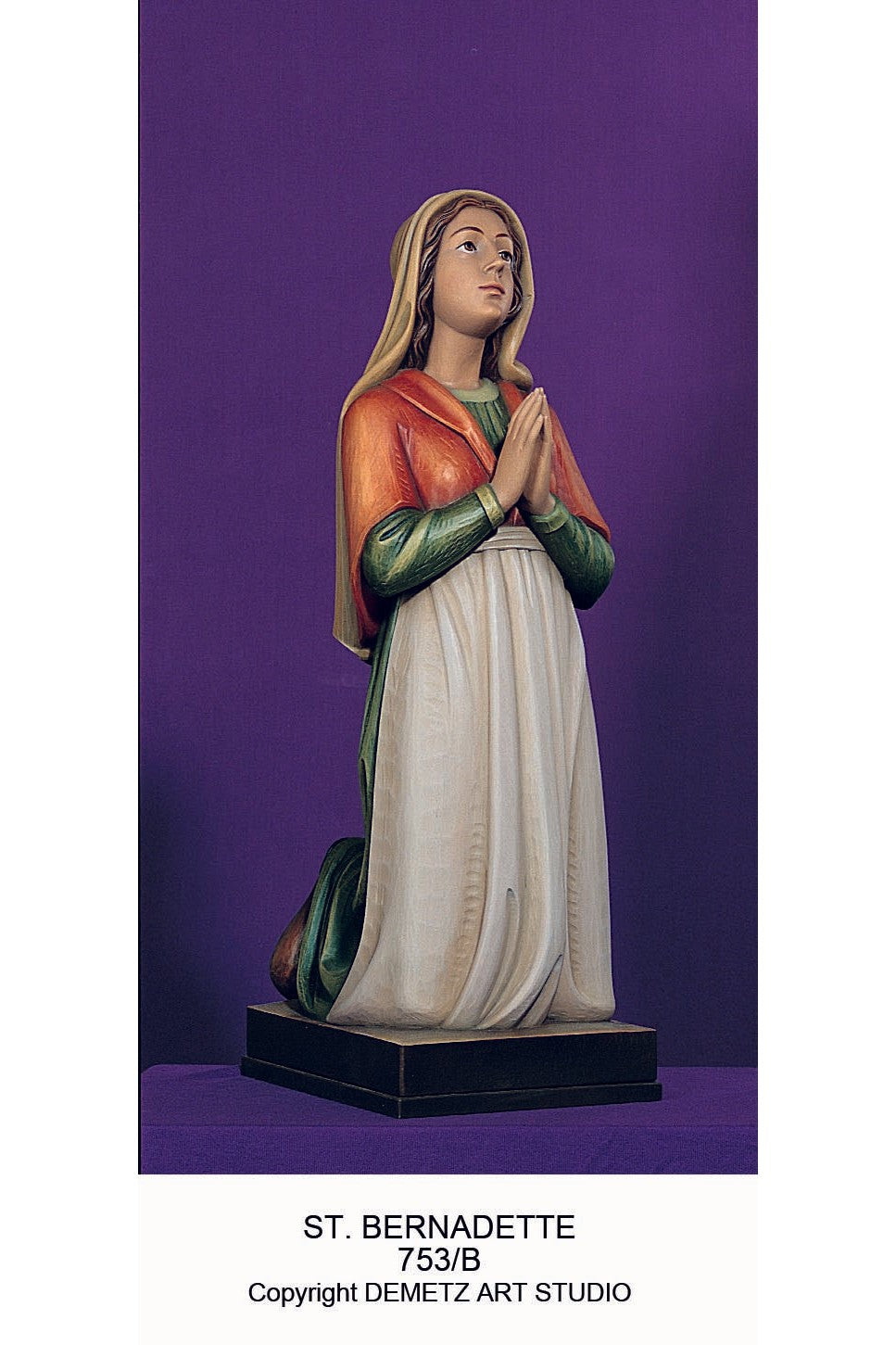 Unit price perSaint Bernadette is made by the Demetz Art Studio in Italy. Hand carved out of linden wood and fiberglass. It is hand painted in traditional colors. Available in four sizes. Each piece can be customized to your requirements.