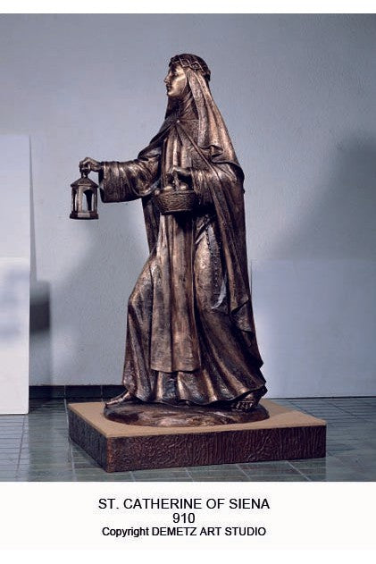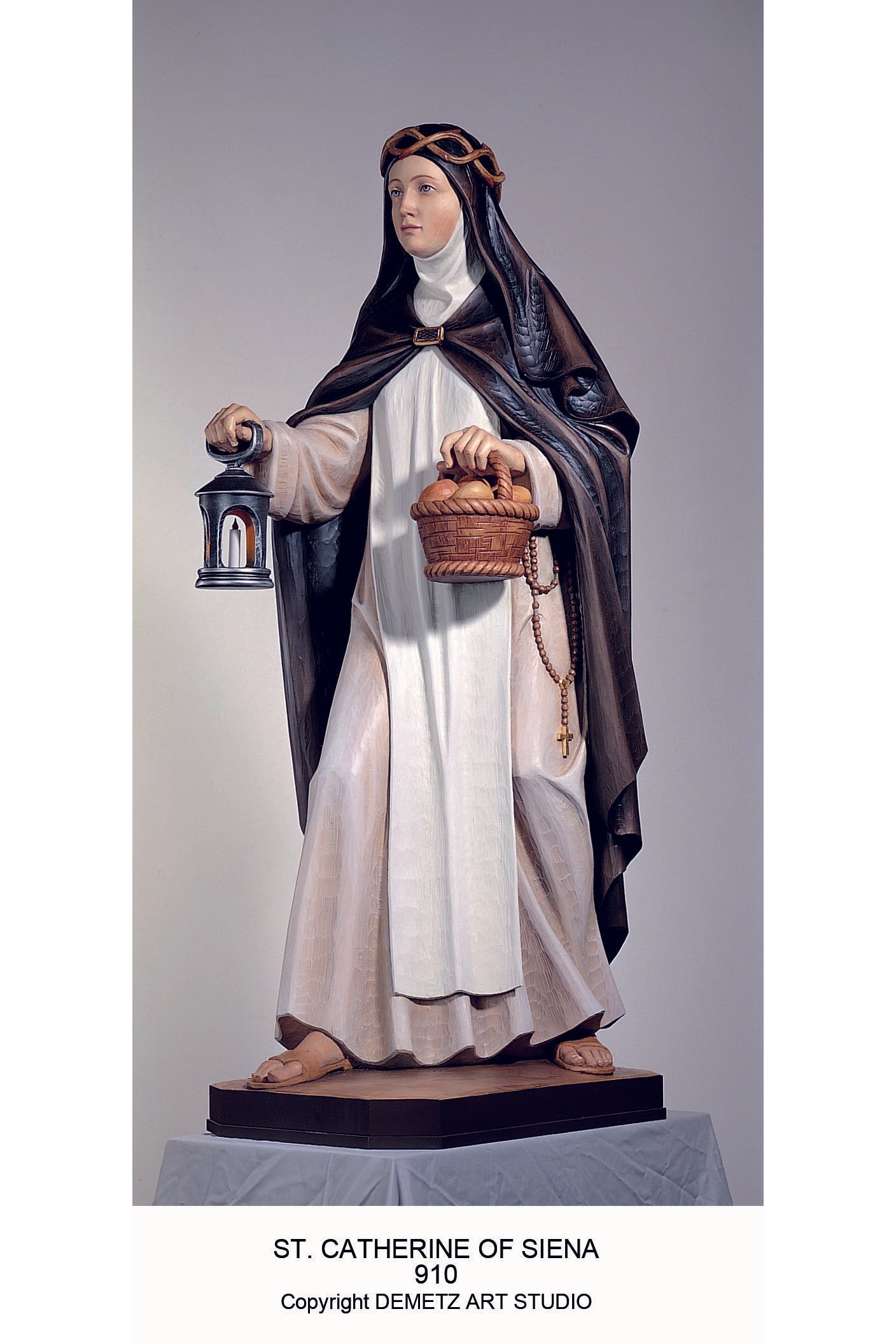 Unit price perSaint Catherine of Siena is made by the Demetz Art Studio in Italy. Hand carved out of linden wood and fiberglass. It is hand painted in traditional colors. Available in three sizes. Each piece can be customized to your requirements.