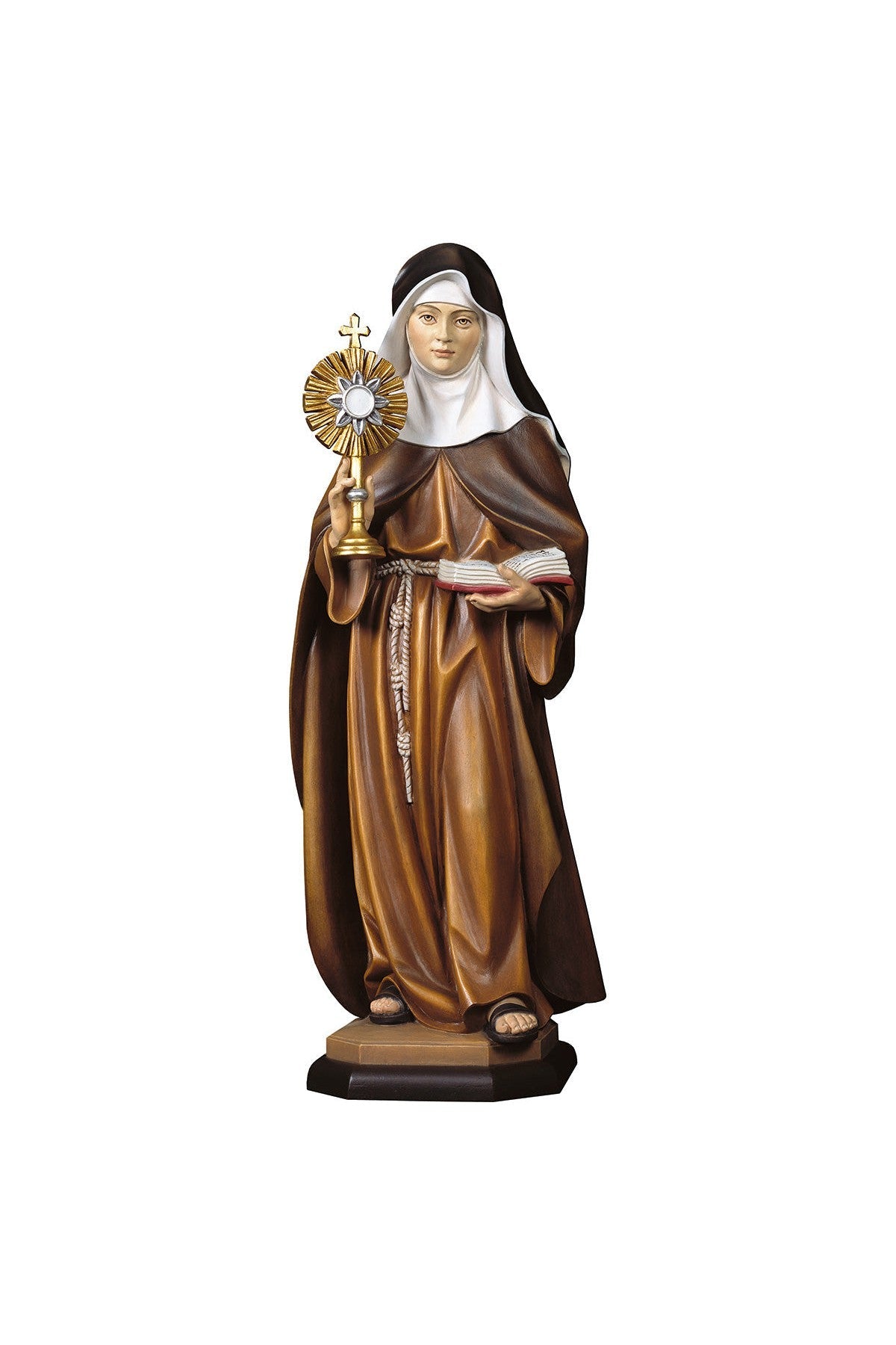Unit price perSaint Clare is made by the Demetz Art Studio in Italy. Hand carved out of linden wood and fiberglass. It is hand painted in traditional colors. Available in four sizes. Each piece can be customized to your requirements.