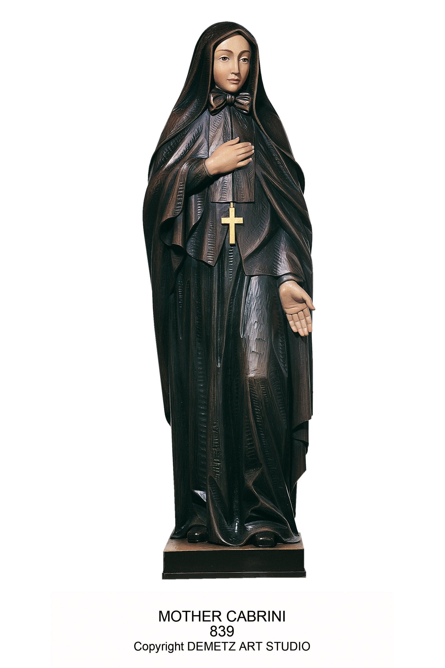 Unit price perSaint Francis Cabrini is made by the Demetz Art Studio in Italy. Hand carved out of linden wood and fiberglass. It is hand painted in traditional colors. Available in three sizes. Each piece can be customized to your requirements.