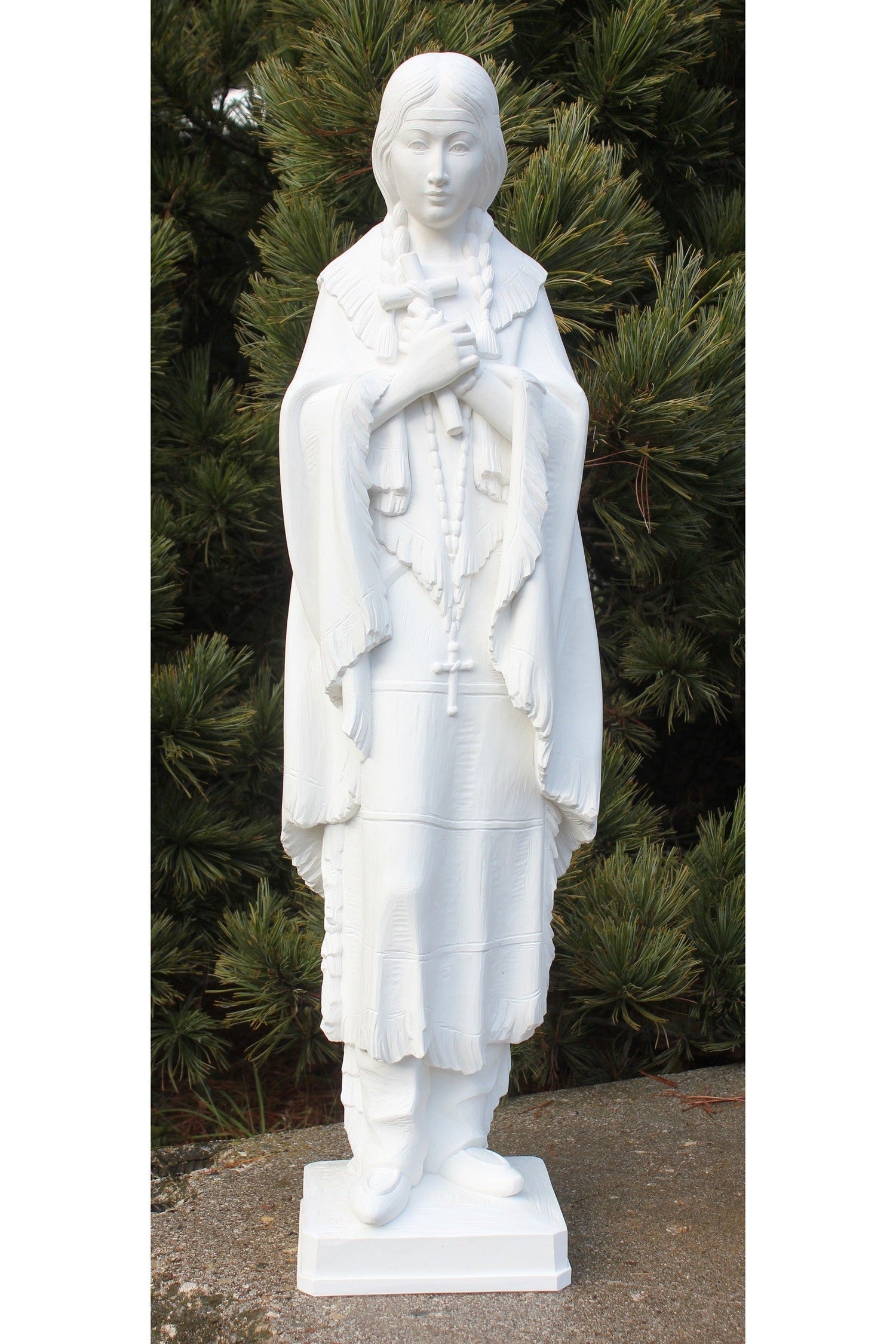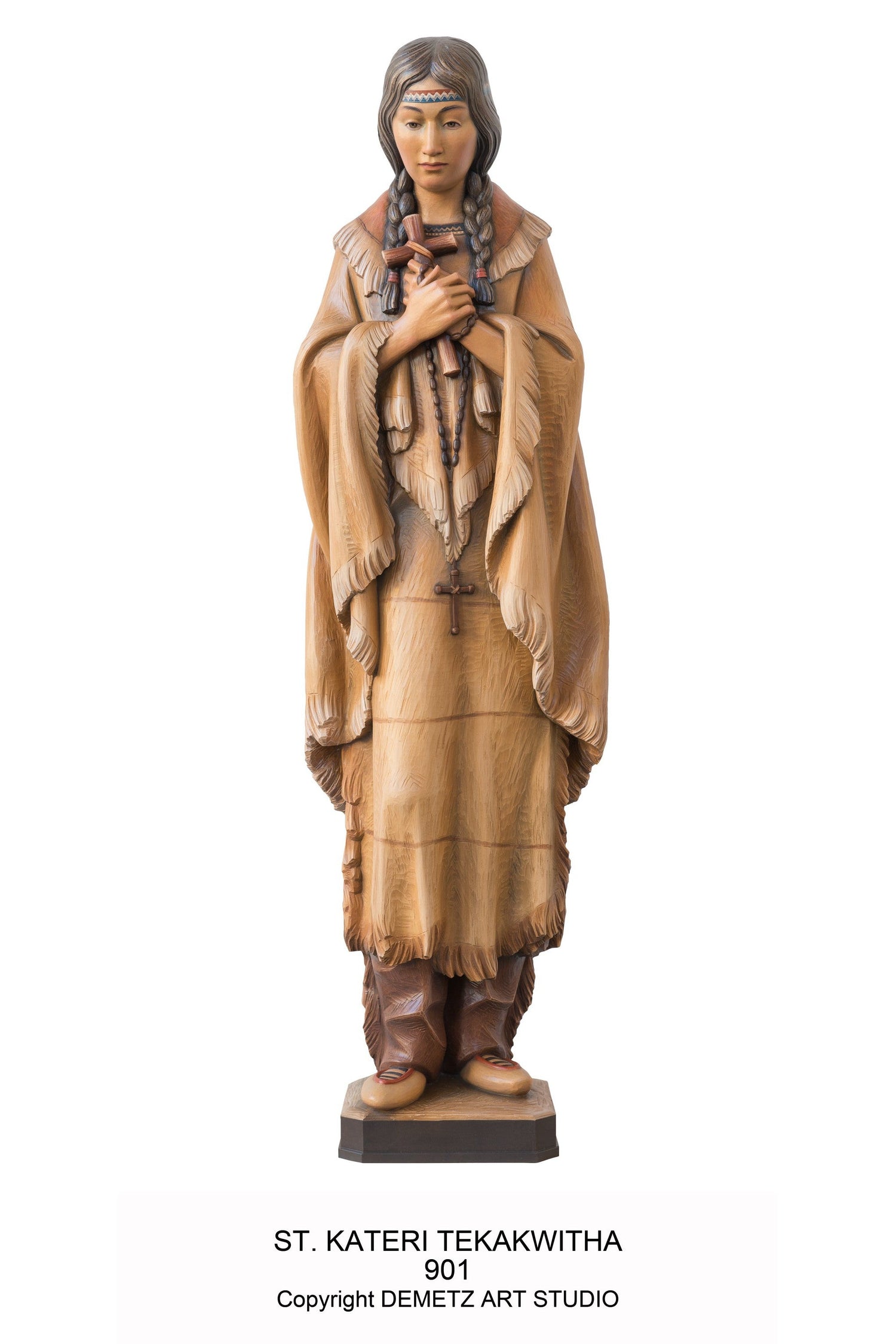 Unit price perSaint Kateri Tekakwitha is made by the Demetz Art Studio in Italy. Hand carved out of linden wood and fiberglass. It is hand painted in traditional colors. Available in three sizes. Each piece can be customized to your requirements.