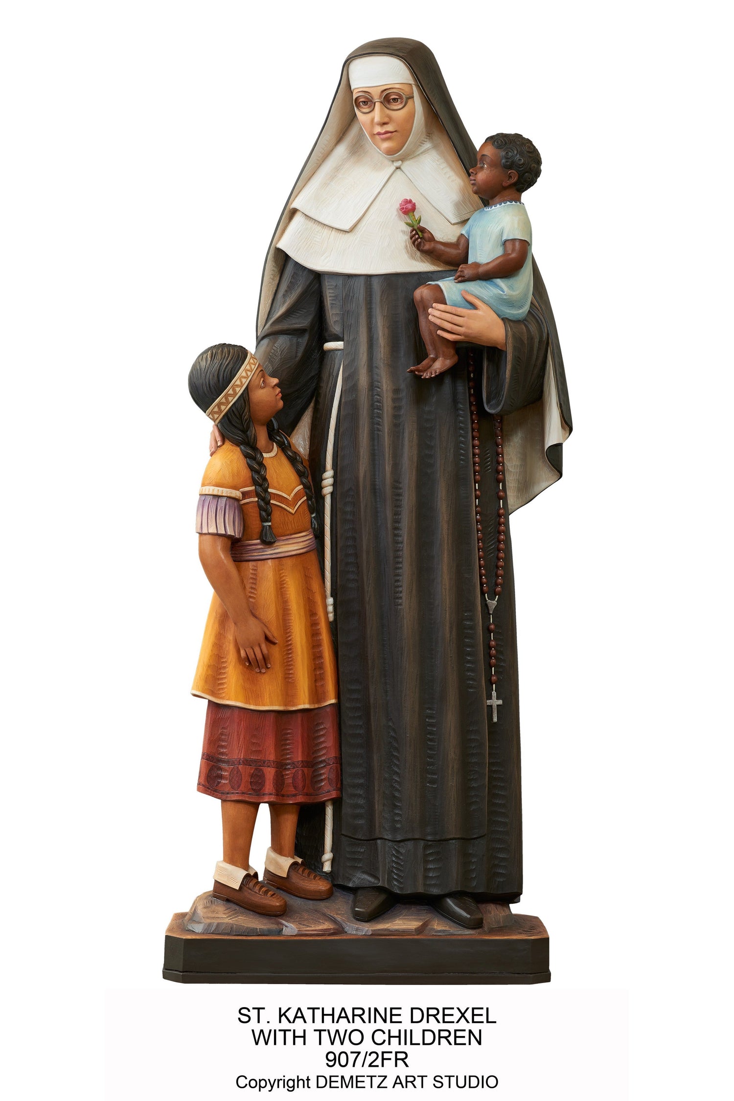 Unit price perSaint Katharine Drexel with Children- full round - is made by the Demetz Art Studio in Italy. Hand carved out of linden wood and fiberglass. It is hand painted in traditional colors. Available in one size. Each piece can be customized to your requirements.