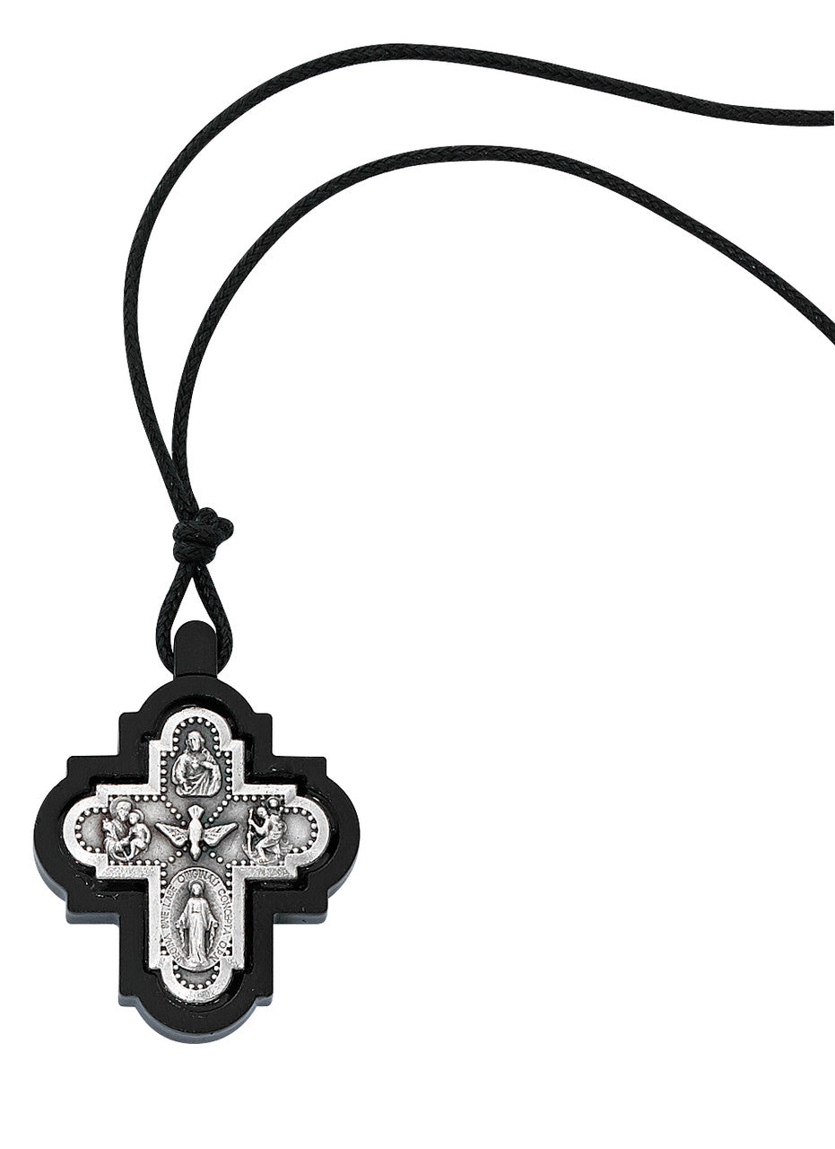 Black Framed 4 Way Cross on Cord - UZNK202C