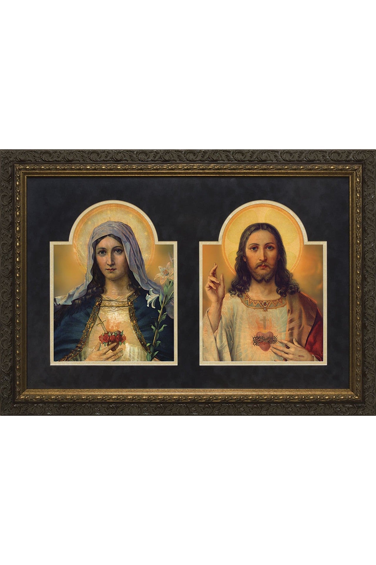 Unit price perHouse Blessing-Sacred Heart of Jesus-Immaculate Heart of Mary in a fine detail Channel Grooved Dark Walnut Frame with gold inside lip.