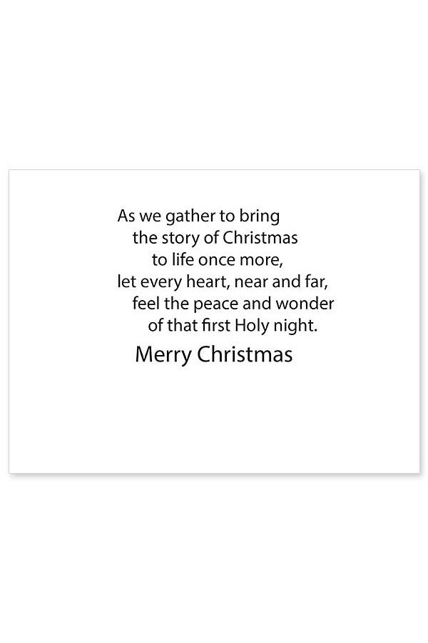 Unit price perThis Christmas, send blessings of joy, love, and peace to family and friends with these religious boxed Christmas cards. Featuring Scripture from the KJV Bible, a meaningful message, and a lovely Christmas illustration, these small cards are sure to bring big blessings to the receiver and bring joy during the holidays. Send them in the mail or even use them as a gift tag for an inspirational and personal touch.