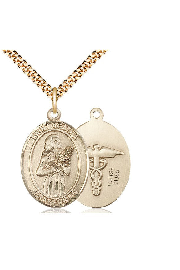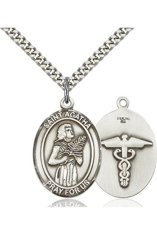 Unit price perSt. Agatha/Nurse Medal. Heavy 24" Curb Chain. Medal Dimensions: 1 x 3/4". Gift boxed in a velvet box.