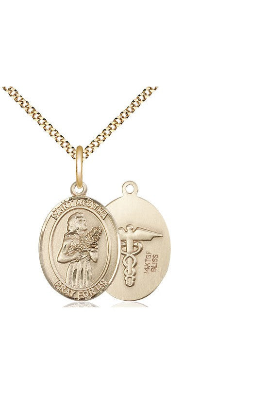 Unit price perSt. Agatha/Nurse Medal. Lite 18" Curb Chain. Medal Dimensions: 3/4" x 1/2". Gift boxed in a velvet box.